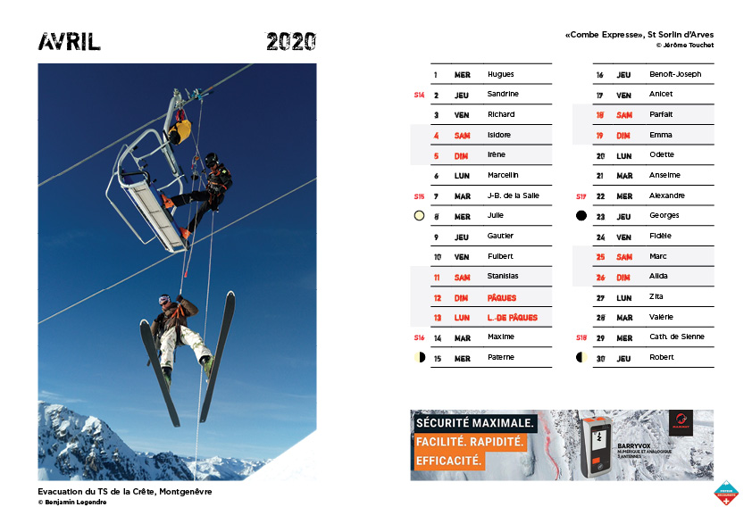 Calendrier Pisteur Secouriste 2020